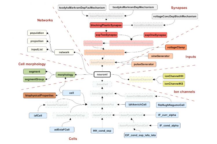 The NeuroML project focuses on standard descriptions of neuroscience model components, in the form of development of an XML (eXtensible Markup Language) based description language that provides a common data format for defining and exchanging descriptions of neuronal cell and network models.