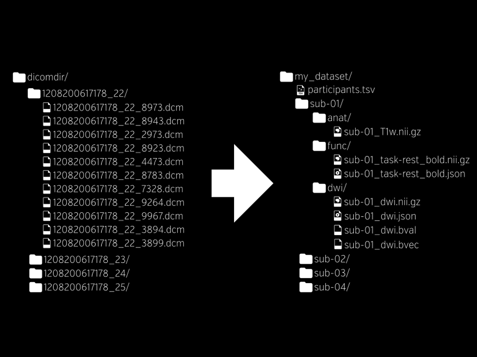 21 December 2016Neuroimaging experiments result in complicated data that can be arranged in many different ways. So far there is no consensus on how to organize and share data obtained in neuroimaging experiments. Lack of consensus (or a standard) leads to misunderstandings and time wasted on rearranging data or rewriting scripts expecting certain structure. BIDS (Brain Imaging Data Structure) was developed to give the community a simple and easy to adopt way of organizing neuroimaging and behavioral data.