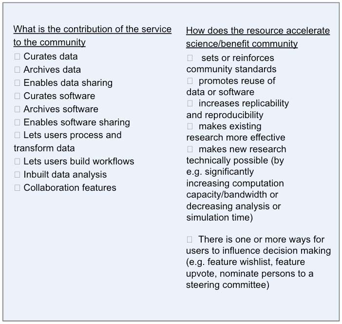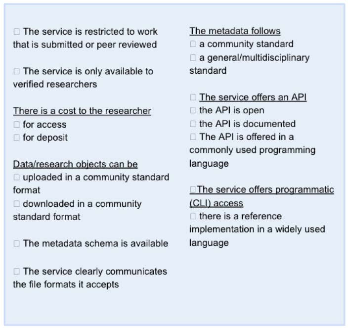 Evaluation Criteria Checklist for Repositories and Scientific gateways