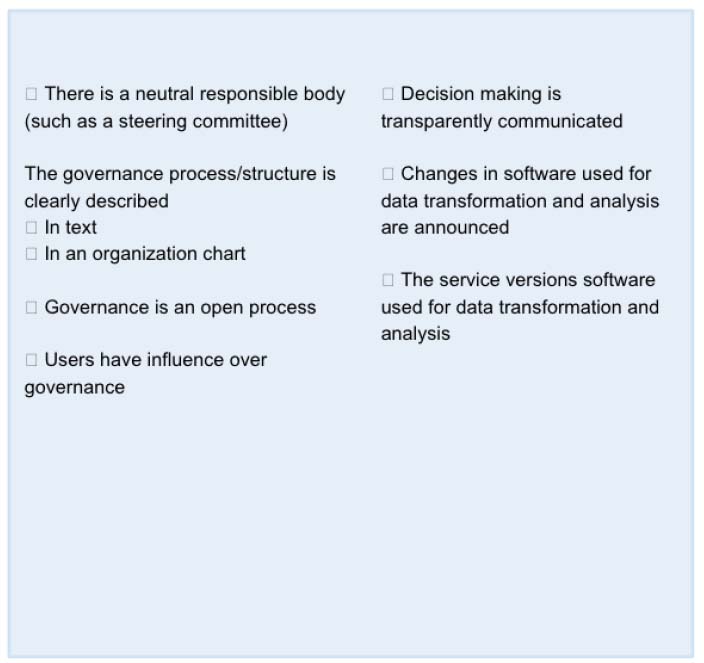 It is essential that a service uses appropriate licensing. Licensing conditions of uploading data to the platform, or reusing data within the platform, need to be clearly and transparently articulated.