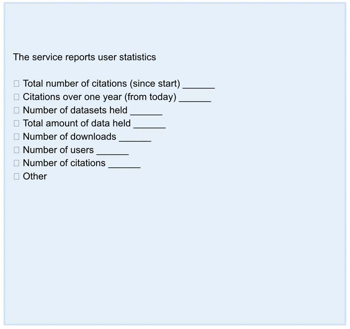 Services should be transparent with their usage data, including usage statistics and citations. Ideally the past usage history is also available.