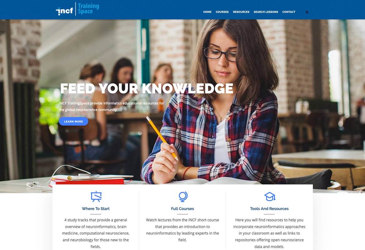 21 December 2018INCF is proud to announce the upcoming official launch of TrainingSpace (TS), an online hub that aims to make neuroscience educational materials more accessible to the global neuroscience community developed in collaboration with INCF, HBP, SfN, FENS, IBRO, CONP, IEEE, BD2K, and iNeuro Initiative. The new TrainingSpace launch is scheduled for 24 March 2019, but until then you can still take advantage of the training resources on the old TrainingSpace. As a hub, TS provides users with access to: